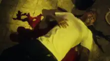 A screenshot of the music video, where Ty Dolla Sign is laying on the floor after being stabbed.