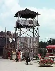 In 1967, the Floralies internationales d'Orléans attracted 2,300,000 visitors in six months. The global budget was more than one million francs.[5] From April to October 1967, Orléans became the world capital of horticulture: 330 exhibitors, 700 producers from 11 countries, 13,000 m² of glasshouses specially constructed to house successive exhibitions on 35 hectares. Apart from horticulture, the Floralies included several attractions including a reconstruction of a Gaulois village, thus destroying an ancient temple.