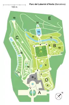 The Parc del Laberint d'Horta (Catalan pronunciation: [ˈpaɾɡ dəl ləβəˈɾin ˈdɔɾtə], "Park of the Labyrinth of Horta", sometimes referred to as Jardins (Gardens) del Laberint d'Horta) is a historical garden in the Horta-Guinardó district in Barcelona and the oldest of its kind in the city. Located on the former estate of the Desvalls family, next to the Collserola ridge, the park comprises an 18th-century neoclassical garden and a 19th-century romantic garden. On the lower terrace is the hedge maze that gives the park its name.