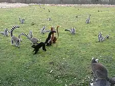 In addition to the felids, there is a large lemur population in the park. Many lemur species are represented, including the ring-tailed lemur (Lemur catta), the red ruffed lemur (Varecia rubra), the crowned lemur (Eulemur coronatus), and the red-bellied lemur (Eulemur rubriventer). Many of the lemurs roam freely about the park, and occasionally interact with visitors.
