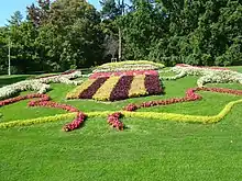 The most elaborate part of the landscaped park is the mosaic representing the coat of arms of Rennes framed by two ermines. This is the only part of the park enclosure that is largely open to the outside for passers-by and motorists traveling along the rue de Paris.