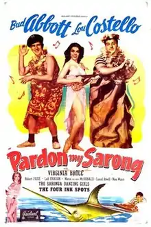 Pardon My Sarong is a 1942 American comedy film directed by Erle C. Kenton and starring Abbott and Costello. The cast also featured Virginia Bruce, Robert Paige and Lionel Atwill. It was produced and distributed by Universal Pictures as part of a long-running series featuring the comic duo.
