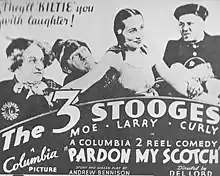 Pardon My Scotch is a 1935 short subject directed by Del Lord starring American slapstick comedy team The Three Stooges (Moe Howard, Larry Fine and Curly Howard). It is the ninth entry in the series released by Columbia Pictures starring the comedians, who appeared in 190 shorts at the studio between 1934 and 1959.