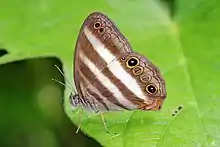 Pareuptychia ocirrhoe, the two-banded satyr or banded white ringlet, is a species of butterfly of the family Nymphalidae. It is found from Mexico to the Guyanas, Paraguay and northern Argentina. The habitat consists of forests.