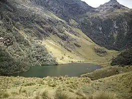 Lake Pariacocha (possibly from Quechua parya reddish, copper or sparrow, qucha lake)[2][3][4] is a lake in the eastern part of the Cordillera Blanca in the Andes of Peru. It is located in the Ancash Region, Asunción Province, Chacas District.[5]