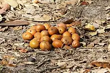 A traditional food plant in Africa, this little-known fruit has potential to improve nutrition, boost food security, foster rural development and support sustainable landcare.[3] The wood is very hard and heavy, for it contains silica crystals;[2] it is therefore difficult to work, but unfortunately is not durable and so is little used, although it makes good charcoal. However, the main value of the tree is the delicious fruit, which appears early in the dry season and can be harvested over three or more months. It is used as a snack, and the kernel has a high oil content. The crushed pulp of the fruit is an ingredient in drinks, and since it ferments well, is often used to make alcoholic drinks as well.[4]