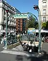 Ninety-one Guimard entrances survived until 1970.[20] Eighty-six are still extant and protected as historical monuments; six were protected in 1965, the remainder in 1978.[27] These include two original Type B édicules: at Porte Dauphine, on its original site and with the wall panels, and at Abbesses (moved from Hôtel de Ville in 1974). A third Type B of varying form at Châtelet is a 2000 recreation.[8] The remainder of the preserved entrances are simple enclosures or entourages, with or without the light and sign arch. In addition, two sides of an entourage form an entryway to the headquarters building of the RATP.