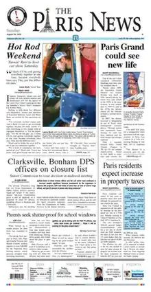 The Paris News is a newspaper based in Paris, Texas, covering the Northeast Texas counties of Lamar, Delta, Red River and Fannin, plus Choctaw County, Oklahoma. It publishes three days a week (Tuesdays, Thursdays, and Sundays). It is owned by Southern Newspapers Inc.
