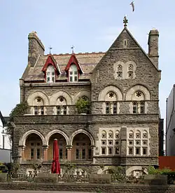 Commissioned by McConnochie in 1871,[1] the house was completed externally by 1874,[2] although decoration of the interior continued, somewhat slowly, until McConnochie's Cardiff mayoral year of 1880.[3] The surveyor was J. Holden.[4] The house was much admired at the time of its construction, being referenced by Viollet-le-Duc[5] and its plans displayed at the Royal Academy.[3] Today, the house is of particular interest for three reasons; as the precursor of Burges' own house in Kensington, as evidence of one of the few architectural errors Burges made in his career[3] and as a template for an architectural style which had a significant influence on late Victorian and early Edwardian Cardiff. "By its powerful early French Gothic style, its steep roofs and boldly textured walls (the house) revolutionized Cardiff's domestic architecture."[6] It was later renamed as Park House.[7]