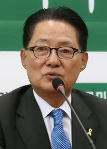 Park Jie-won(Korean: 박지원; Hanja: 朴智源; born 5 June 1942) is a South Korean politician[1] who served as Director of the National Intelligence Service. He was the chief presidential secretary to President Kim Dae-jung,[2] and served as the Minister of Ministry of Culture, Sports and Tourism and coined the term "Esports"[3] during his administration. On 9 April 2008, he was elected as a member of 18th National Assembly of South Korea for Mokpo as an independent. After being elected, he returned to the Democratic party. In May 2012, he became the floor leader for the Democratic United Party.[1]