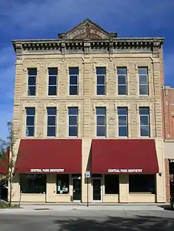 Parker's Opera House, also known as Opera House Store, Woolworth's and Parker Place, is a historic building located in Mason City, Iowa, United States. It was designed by the prominent Des Moines architect William Foster. Cousins H. G. and A. T. Parker built this structure as an opera house, which was the first one in the community.[2] While it initially filled a need in Mason City, it was replaced by more modern theatres around the turn of the 20th century. The third floor was created in the building in 1909 when it was placed across the middle of the auditorium. The first floor initially housed a clothing store, and F. W. Woolworth Company occupied it beginning in the mid-1920s, and the upper floors housed the local offices of the Standard Oil Company at the same time.[2] The two-story addition in the rear was built in the 1960s. The first floor was redesigned in 1997 for Central Park Dentistry. The upper floors were converted into apartments in 2013.[3]
