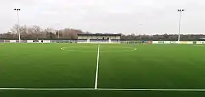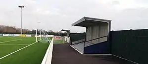 During the 2010s the club bought the site of a former gravel pit from Thurrock Council using money raised from selling Mill Field to developers.[2] The 2016–17 season was the club's last at Mill Field, as they moved to Parkside for the start of the 2017–18 season.[11] The new ground featured two seated stands on either side of the pitch, one of which was built into the clubhouse, with the clubhouse roof overhang providing cover.[1] Two covered terraces were erected behind each goal, either side of the goalmouth, whilst an artificial pitch was installed.[1] In 2018 Parkside hosted a number of games in the CONIFA World Cup.[12] The ground has also been shared by Grays Athletic (2017–2023), May & Baker (since 2019), Cannons Wood (since 2023) and Hashtag United Women (since 2023).