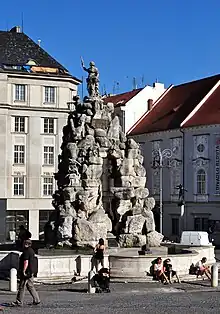 The Parnas Fountain is a fountain in Zelný trh square in Brno, Czech Republic. It is one of the most notable water fountains and baroque architectural monuments in Brno.[1] It is a landmark of the square, located roughly in the middle of the square. Designed by Johann Bernhard Fischer von Erlach,[2] it was built in 1690–1695 by Adam Tobiáš Kracker of Vienna.[3]
