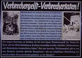 Propaganda Warfare Executive manager Sefton Delmer wrote that this leaflet was a deliberate parody of a similar genuine Parole der Woche leaflet which spoke of actual German victories.[19] In late 1943, one of these leaflets contained a quote misattributed to Hitler: "If the German people should collapse beneath its present burden, I would shed no tears for it—it would deserve its fate..."[19][20] In 1944, one leaflet stated "We want a leader by the grace of God and not a murderer from Berchtesgaden!"[19][21] This slogan became especially popular with anti-Nazi Germans and those who considered the war hopeless.[19][22]