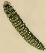 Apple leaf with mine of young larva (2b); another apple leaf with a mine of a young larva, and with its lower parts drawn together by a web spun by the adult larva near the petiole