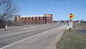 The previous bridge in this location, built in 1906, was designed by C.A.P. Turner's engineering firm. Since it could not be determined that C.A.P. Turner himself had designed the bridge, however, the old bridge was not saved or included on the National Register of Historic Places. Despite the historic nature of the old bridge, it had deteriorated to the point where it had to be demolished in 1984.
