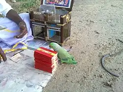 Parrot astrology or Parakeet fortune-telling is a type of astrology traditionally practiced in the Indian states of Tamil Nadu and Andhra Pradesh and by Indian Singaporeans. It involves using mainly rose-ringed and Alexandrine parakeets which are trained to pick up Tarot-like fortune cards.[2][3]