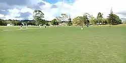 The park is situated on what was historically ancestral land of Te Kawerau a Maki until a crown grant of 536 acres (217 ha) was purchased in 1855 by the Parrs, regarded as one of the earliest Pākehā families to settle in the area. Over the years, the property was split between the family and in 1966 a section of the land, that was later to become Parrs Park, was purchased by the Waitemata County Council.[1] In 1968 when Parrs Park was still a 70-acre (28 ha) reserve, there was some debate about how to best develop it into an all-purpose sports ground but it was eventually put into a council plan that had "15 grassed sports fields for football, cricket, athletics and softball...[with]...provision for bowls, tennis, basketball and croquet".[2] By June 1968, with the land then known as Parrs Cross Roads Reserve, the Waitemata County Council noted that it would terminate the existing lease on the land to allow tenders to be called to develop the area.[3] On 15 April 1969, a councillor answered a claim in a letter to the local newspaper that "women bowlers had not been considered in pleas for the park development", and said that the Oratia Bowling Club had shown a lot of initiative, and "the County Council would welcome similar initiative on the part of other sporting organisations, including women bowlers...[concluding]...there [was] plenty of room at Parrs Park".[4]