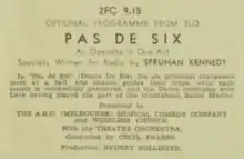- ↑ "Programmes For The Week". The Mail (Adelaide). Vol. 25, no. 1, 277. South Australia. 14 November 1936. p. 26. Retrieved 9 September 2023 – via National Library of Australia.