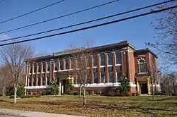 The Pascoag Grammar School, also previously the Burrillville High School, is a historic school building at 265 Sayles Avenue in the Pascoag village of Burrillville, Rhode Island. The Colonial Revival school was built in 1917 by Thomas McLaughlin and Mahoney & Coffey to replace a previous school that had burned. There had been a school on the site since at least the mid-19th century. The school is a T-shaped brick structure 2+1⁄2 stories high. It has fifteen bays across its main facade, with a raised center entrance. When built it first served as the town's high school. In 1936 a new high school building was built, and this one the served strictly as an elementary school until it was closed in 1995. It sat vacant until 2005, when it was acquired by a developer and rehabilitated.[2]