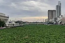In 1990, Filipino shipping conglomerate Magsaysay Lines began operating Metro Ferry as an alternative mode of transport along the Pasig River to alleviate the traffic problem in Manila.[3] The Metro Ferry operated a route from Guadalupe in then-municipality of Makati down to Escolta Street in Manila, spanning a total length of 15 kilometers (9.3 mi) using river-side sheds as stations and piers constructed by the Philippine Ports Authority. The service, however, lasted only for a year, closing in 1991.[2] Its short-lived operation was beset by problems such as the proliferation of informal settlers along the route, water lilies, garbage and other debris clogging the waters. Aside from the foul odors permeating the environs, these problems also prevented the boats from traveling at normal speeds.