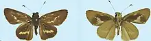 - ↑ de Jong, Rienk (2008). "Notes on some skippers of the Taractrocera-group (Lepidoptera: Hesperiidae: Hesperiinae) from New Guinea". Zoologische Mededelingen. 82 (10): 73–80.