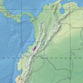 The Patía Valley is in southwestern Colombia along the Patía River and its tributaries, surrounded by ranges of the Andes. It has an area of 233,098 hectares (576,000 acres).[1] It is almost completely surrounded by the Northwestern Andean montane forests ecoregion. The western extension downstream along the Patía River merges into the Chocó–Darién moist forests ecoregion.[2]