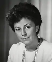 Llewelyn-Davies entered the civil service in 1940 and served in the Ministry of War Transport, the Foreign Office, the Air Ministry and the Commonwealth Relations Office.[2] She resigned to contest the Wolverhampton South-West parliamentary seat for Labour during the 1951 general election, but was defeated by the incumbent Conservative Enoch Powell. She subsequently unsuccessfully contested the Wandsworth Central seat in 1955 and 1959, but didn't stand for parliament again.[2] With support of those in the Wilson government and the backing of close friend Richard Crossman,[1] who described her in his diaries as "the real politician" when her husband was elevated to the peerage,[1] she was created a life peer as Baroness Llewelyn-Davies of Hastoe, of Hastoe in the County of Hertfordshire on 29 August 1967.[3] She went on to serve as a Government whip in the House of Lords between 1969 and 1970, and as Opposition Deputy Chief Whip from 1972. In 1973 she was elected Chief Whip, becoming the first woman to take charge of a whip's office in either house.[1] On the return of the Labour Party to government in 1974 she became Captain of the Gentlemen-at-Arms (Government Chief Whip). In 1975, she became a Privy Counsellor. From 1979 to 1982 she was once again Opposition Chief Whip. From 1982 to 1987, she was Principal Deputy Chairman of Committees in the House of Lords,[2] an office carrying with it the role of Chairman of the European Communities Committee.[4]