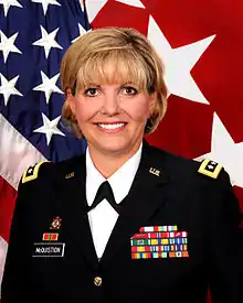 McQuistion was appointed as commanding general of the 21st Theater Sustainment Command in Kaiserslautern, Germany on May 12, 2009.[9] McQuistion was relieved from her command in Columbus on August 6,[10] and assumed her new command on August 20.[11] She was subsequently nominated for promotion to the rank of major general on October 15.[12] This nomination was quickly reviewed and approved by the Senate on October 28.[13] She received this promotion on November 10. After serving in Germany for two years, she was appointed commanding general of the United States Army Sustainment Command in Rock Island, Illinois on April 5, 2011.[14] McQuistion was relieved from her previous command on August 25,[15] and assumed her new position on October 28.[16]