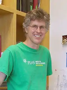 Brown began a collaboration with other scientists, including Harold Varmus (then director of the National Institutes of Health), David J. Lipman (then director of the National Center for Biotechnology Information), and Michael Eisen of Lawrence Berkeley National Laboratory, to overhaul the scientific and medical publishing systems to make papers available on the rapidly developing Internet platforms such as Usenet and the World Wide Web.[16] "Why should publishers be able to control what I can do with information that was published by my scientific colleagues whose motivation was exactly to have their discoveries contribute to future discoveries? ... We had already existing tools that we could use to so to speak hyperlink things so that you could reorganize information in systematic ways, but they weren't really being exploited by the conventional scientific literature," Brown said in an interview with BioMedCentral Biology.[17] The magazine Nature reported that the scientists' open-access movement could "spell the end for many print titles";[18] Brown called subscription-based scientific journals "anachronisms."[14]