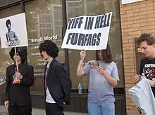 In February 2007, the group gained media coverage after an attack on the Second Life headquarters of politician John Edwards in which the Patriotic Nigras attacked with their avatars bearing "Bush 08" buttons and defaced Edwards's structure with feces, Marxist/Leninist posters, and obscenity.[18][19] They also received coverage for an earlier attack on a room where Second Life user Anshe Chung was being interviewed about her claims to have made the 'virtual property' equivalent of over one million dollars off the game. The room was invaded by flying penises.[20] This incident was also attributed to the "Room 101" group.[21][22]