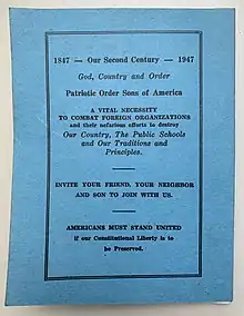 - ↑ National Patriotic Order Sons of America http://www.nationalposofa.org