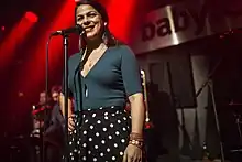 Throughout her career, Ferrara has performed, toured, and recorded with Waldeck, Lee Scratch Perry, Wladigeroff Bros,[11] Martin Spitzer,[12] Joschi Schneeberger, John Heard,[13] Dean Bowman,[14] Vinx, James Weidman, Danny Grissett,[15] Gerald Schuller, Lonnie Plaxico, Kyle Eastwood, Célia Mara, DJ DSL, Marcos Vigio, Jorge Amorim, Sertab Erener (winner of the Eurovision Song Contest 2003), Jon Sass (Ray Anderson, Boston Symphony Brass, David Murry), Chester C. Washington (Earth, Wind and Fire), Rudi Wilfer†, Fred Eisler,[16] DJ CUTEX,[17] and the poet Christian Ide Hintze† for his 2004 pitch in the Austrian competition to participate in the European Song Contest 2005.[18][19]