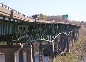The Patroon Island Bridge is a multi-span deck truss bridge that spans the Hudson River in Albany, New York. A major crossing, it carries Interstate 90 in the east-west direction between Albany and Rensselaer Counties. It has been in service since 1968, with structural repairs made in 1992, and a comprehensive renovation/retrofit completed in 2016.