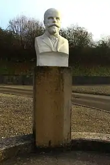 A monument to Bourde was created by the Belgian sculptor Yvonne Serruys.[12] It was unveiled in Sfax, Tunisia, by Resident General François Manceron on 13 April 1930 in a ceremony attended by many notable people.[13] Bourde's and that of the geologist Philippe Thomas were thrown down and shattered on the night of 3–4 January 1957.[14] The mayor of Voissant, Bourde's birthplace, managed to recover it and erect it in the heart of Voissant, where it stood until 1981. It was then replaced by a copy.[15] The village of Néyrieu near Saint-Benoît, Ain, where Paul Bourde is buried, asked for the original. A local stonemason restored the bust, and it was put in place in the village in 1994.[15]