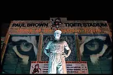 Brown's legacy in Massillon is still honored to this day: the Tiger teams wear his initials on the front shoulder of their uniforms, and a portrait of Brown is permanently displayed on the scoreboard of Paul Brown Tiger Stadium.