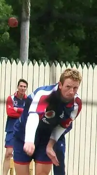 He captained his county club, Durham County Cricket Club, for the final six seasons of his career.[1][2][3] A batting all-rounder, whose batting combined natural strokeplay with great tenacity, Collingwood also bowled reliable medium pace. Described as a "natural athlete", he was regarded as one of the finest fielders of his time, usually fielding at backward point or at third or fourth slip in Tests; he also deputised as wicket-keeper for England.[1][4][5][6]