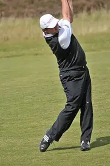 Lawrie's career was transformed in 1999. After winning the Qatar Masters (a European Tour event) early in the season, he went on to win the 1999 Open Championship at Carnoustie in July.[6] This was the Open where the Frenchman Jean van de Velde blew a three-shot lead on the final hole. Lawrie won a four-hole playoff against Van de Velde and American Justin Leonard. An unusual aspect of Lawrie's victory was that he was neither leader nor co-leader at any time during his regulation 72 holes, only moving into a share of the lead when the leaders came back to him after he had completed his final round. Also, Lawrie came back from the largest third-round deficit ever faced by a major championship winner - going into the final day, he trailed the leader, Van de Velde, by 10 shots. This is also the record for the biggest final-round comeback on the PGA Tour.[7]