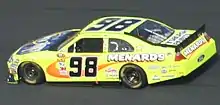 For the 2009 season, Menard moved over to the No. 98 Ford Fusion operated by Yates Racing. Menard showed limited improvement in 2009, running in the top 10 many times, only to later have problems. For example, he crashed at Las Vegas Motor Speedway while running very well, and was involved in a wreck with only 40 laps to go, while running 7th. These issues lead to the team being in danger of falling out of the top 35 in points standings for much of the year. Menard's best finishes included two 13th-place finishes in the Aarons 499 at Talladega Superspeedway as well as the Samsung 500 at Texas Motor Speedway, and a 15th-place finish in the Southern 500. At the second Dover race, Menard started 10th and ran in the top 10 for most of the day, only to find his car tighten up near the end of the race and come home 19th. At the end of the 2009 NASCAR Sprint Cup Series, Menard was the only driver to not score a top 10 finish who ran all of the races. Menard ended up finishing 31st in the final point standings.