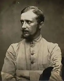 Pelliot's expedition left Paris on 17 June 1906. His three-man team included Dr. Louis Vaillant, an Army medical officer, and Charles Nouette, a photographer. Aboard the train in Samarkand, the Frenchmen met Baron Gustaf Mannerheim, a colonel in the Russian Imperial Army and the last Tsarist agent in the Great Game. Pelliot had agreed to allow the army officer, disguised as an ethnographic collector, to travel with his expedition. Mannerheim was actually carrying out a secret mission for Tsar Nicholas II to collect intelligence on the reform and modernization of the Qing Dynasty.[5] The Tsar was assessing the possibility of a Russian invasion of Western China. Pelliot fully endorsed Mannerheim's participation, and even offered himself as an informant to the Russian General Staff. In return, the Frenchman demanded free passage on the Trans-Caspian Railway, a personal and confidential payment of ten thousand francs and a Cossack escort. These were granted, and the payment even doubled.[6]