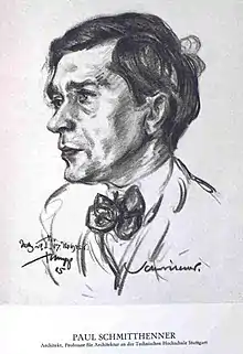 Paul Schmitthenner (born Lauterburg, Elsass-Lothringen, Germany 15 December 1884 – 11 November 1972) was a German architect, city planner and Professor at the University of Stuttgart.