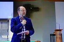 Schnabel at a 2006 Een Land Een Samenleving event in Amsterdam's Nieuwe Kerk