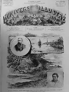 The French annexation of Logo in September 1878 caused Soleillet's mission to be unsuccessful, and Ahmadou said he would not establish normal relations with the French while Brière de l'Isle remained governor of Senegal. Soleillet stayed at Ségou until 20 January 1879, then returned to Saint-Louis by way of Nioro, Kooniakary and Médine.[12] On his return to France Soleillet was received with pomp by the Geographical Society of Bordeaux.[20] He met Freycinet and Jules Ferry, and was given the palms of an officer of the Académie française.[19] He received an inscribed gold chronometer from the Société de géographie de Lyon.[17] Perin gave a short report of Soleillet's expedition to Ségou, and said this proved the administration had been right to support him.[19]