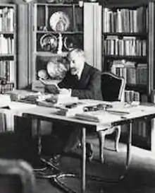 The Vera brothers collaborated on formal, geometric garden designs in Art Deco style.[3] This style originated with the work of Louis Süe.[4] The brothers joined with other artists to create L'Atelier Français, a cooperative business that borrowed organizational idea from the Wiener Werkstätte. The other members included Louis Süe, André Groult, Gustave Louis Jaulmes (1873–1959), Roger de La Fresnaye and André Mare. André Vera wrote a manifesto that defined the goal of the group as combining traditional and modern ideas to bring clarity, order and aesthetic unity to interior design.[5]