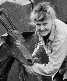 Sister Paula Mary Turnbull (May 26, 1921 – July 20, 2018) was an American sculptor and educator. Known as the "welding nun", she created liturgical and whimsical metal sculptures. Her most famous work is Garbage Goat, a steel sculpture in Riverfront Park in Spokane, Washington, that incorporates a vacuum apparatus allowing the goat to "eat" trash. The iconic sculpture inspired a "secret goat culture" and numerous goat-themed businesses in the city. During her career, Turnbull created dozens of public artworks in Spokane and helped organize the installation of public art at the Expo '74 world's fair.