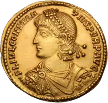 Little is known of Paulus' personal life or background. He was a native of Spain[note 3] and Marcellinus reports that he had a "smooth countenance."[10] Before obtaining his position as an imperial aid, he was a steward of the emperor's table. The exact office he held while in the emperor's service is unclear: Modern sources follow Marcellinus in calling him a notarius (notary) but Philostorgius calls him a clerk, and Marcellinus also alludes to him at one point holding a "receivership" in the provinces.[3][5][11][7] Whatever his official title, his role in Constantus' service was multifaceted: he served as special investigator and judge in cases of suspected treason, "hatchet-man" in rooting out supporters of suppressed rebellions, and as one of Constantius' insiders in rival centers of political power.[3][12][4]