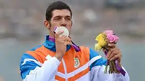 Pavlos Kontides (Greek: Παύλος Κοντίδης, born 11 February 1990) is a Cypriot sailor.[1] He became the first Cypriot athlete ever to win an Olympic medal for his country, by winning the silver medal at the 2012 Summer Olympics in the Men's Laser class behind Tom Slingsby.[2] He won the International Sports Prize World Athlete of the Year award in 2012.[3] On Tuesday 19 of September 2017, Kontides took the 1st place in 2017 ILCA World Championship in Split, Croatia, becoming a World Champion. He won the championship again in 2018, as well as a silver in 2013.