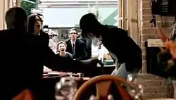 ![]() Anya Rugova (Gordana Rashovich) brutally stabbing herself in her restaurant in front of Detectives Benson (Mariska Hargitay), Stabler (Chris Meloni), and Munch (Richard Belzer) who is holding Marta Stevens (Mili Avital). | |