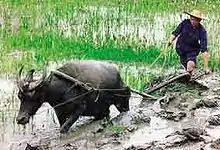 India has the largest water withdrawal out of all the countries in the world. Eighty-six percent of that water supports agriculture.[17] That heavy use is dictated in large part by what people eat. People in India consume a lot of rice. Rice farmers in India typically get less than half the yield per unit area while using ten times more water than their Chinese counterparts. Economic development can make things worse because as people's living standards rise, they tend to eat more meat, which requires much water to produce. Growing a tonne of grain requires 1,000 tonnes of water; producing a tonne of beef requires 15,000 tonnes. To make a single hamburger requires around 4,940 liters (1,300 gallons) of water.[18] To produce a glass of orange juice requires 850 liters (225 gallons) of freshwater.[19]