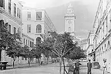 At the junction of Queen's Road with Wyndham Street and Pedder Street, opposite the old Post Office, is a monument erected by public subscription in 1862. Although at the present day absolutely useless owing to the high buildings since constructed around it, the Clock Tower remains as an obstruction to the traffic. During the past ten years the public have off and on agitated for its removal, but, as only to be expected in a Crown Colony, the community's wishes have been over-ridden by the views of the officials, who seem unable to see eye to eye with the people as to the obsolescence of a structure that has long since out-lived its usefulness.